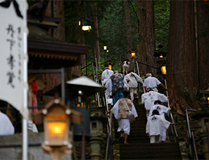 御嶽神社は、山頂に奥社があり、山麓に里社、王滝村上島に三社、三岳村黒沢に若宮と本社があり、毎年夏になると、白衣姿で参拝する講社と呼ばれる信者たちで賑わいます。国常立尊、大己貴命、少彦名命を御祭神とする御嶽神社は、智恵・才能を授け、長寿を護り、病難を癒し、禁厭を司る霊妙神として祀られています。