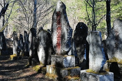また、御嶽山を開いた覚明と普寛は、死後の安住の地を御嶽山と定め、霊魂は御嶽に帰すると歌い残しています。また、御嶽の信者は、死後の霊魂は童子として御山(おやま)に引き取ってもらえると説いています。こうした死後の霊魂の憩いの場を御嶽に求めようとする信仰心が一般に広く浸透し、やがて霊神碑を建立する風習が盛んになったのです。現在、王滝口、黒沢口の両登山道には2万基を超える霊神碑が林立しています。