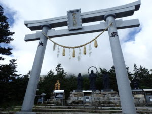富士山、白山、立山と並び日本有数の霊峰として知られる御嶽山は標高3,067m。富士に次ぐ高さを誇る美しい独立峰です。その王滝口頂上・剣ヶ峰に鎮座するのが御嶽神社奥社で、その御祭神は国常立命(くにとこたちのみこと)、大己貴命(おおなむちのみこと)、少彦名命(すくなひこのみこと)。天地力を分け与え、五穀豊穣、子宝・縁結びを祈願し、長寿を護り、病難を癒すとされています。