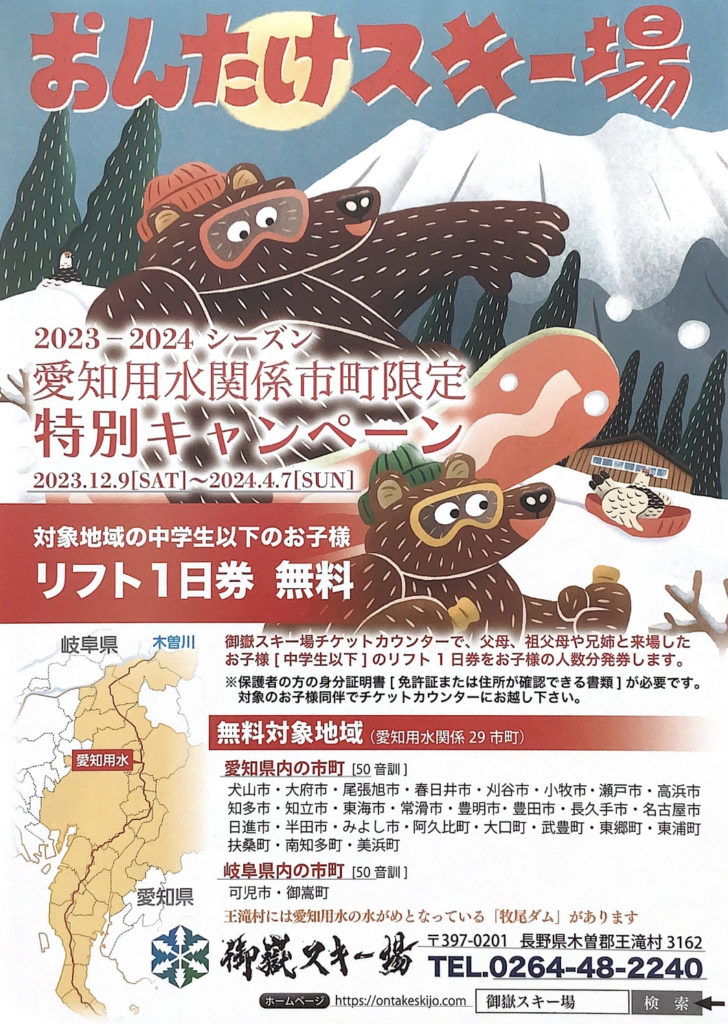 対象地域の中学生以下のお子様リフト1日券が無料となります。