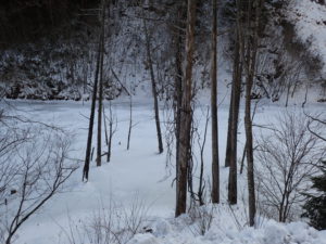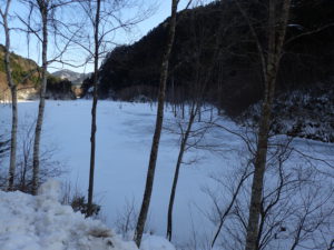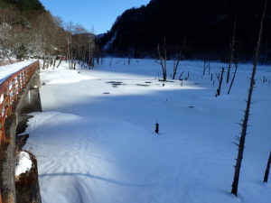 表面には雪が積もり湖面は真っ白な景色を見せてくれています。
