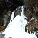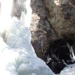 滝の裏側からは上部の氷柱が滝壺まで繋がる見事な氷瀑の様子を見ることができます。