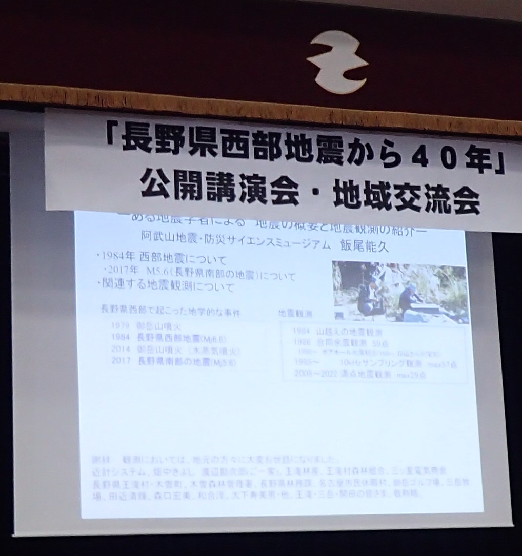 2024年9月15日(日)王滝村公民館にて、名古屋大学御嶽山火山研究施設主催による公開講演会・地域交流会「長野県西部地震から40年」が開催されました。