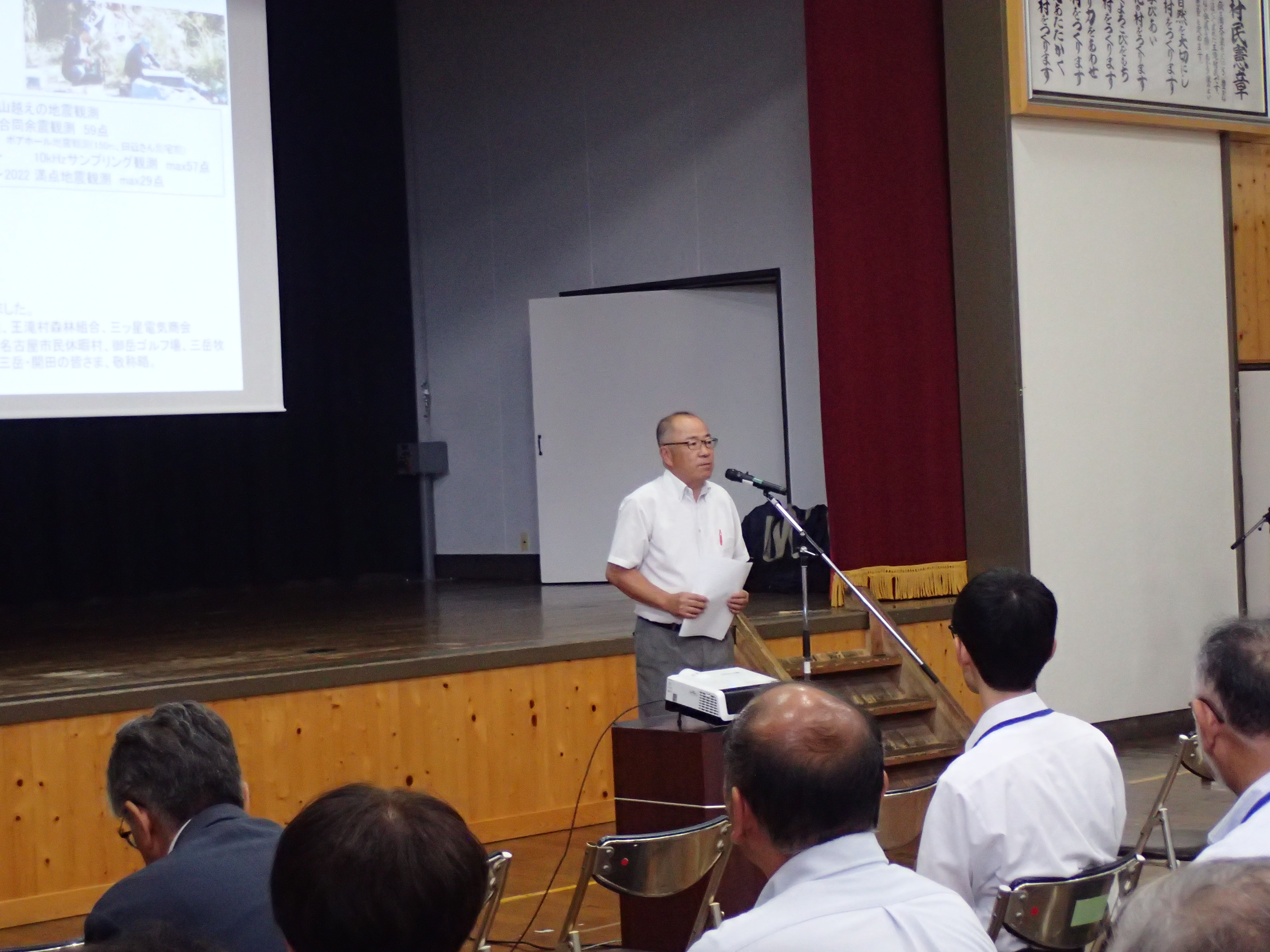 全国より地震地学などに精通された研究者や専門家その他関係各所の方々、村内外からの一般の皆さまと報道関係者およそ200名程の参加者を迎えての会でした。