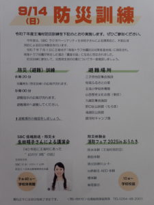 訓練の後には、SBC信越放送・防災士の幾多悦子さんに寄る講演会や、防災体験会が開催されます。