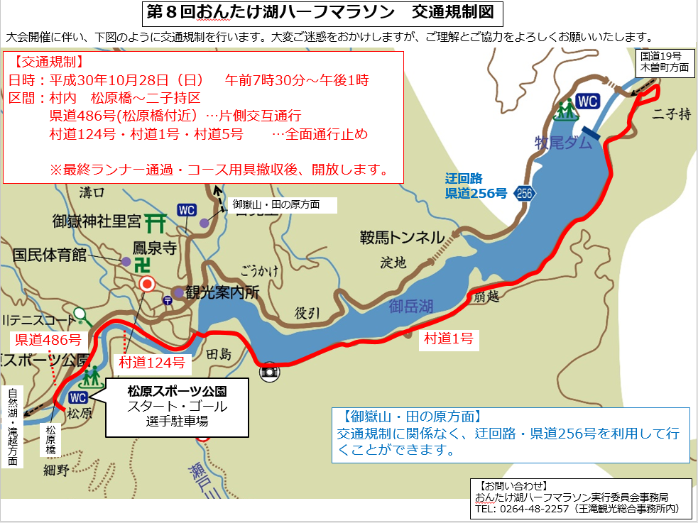 10月28日(日)おんたけ湖ハーフマラソン開催に伴う交通規制のお知らせ 2018.10.23