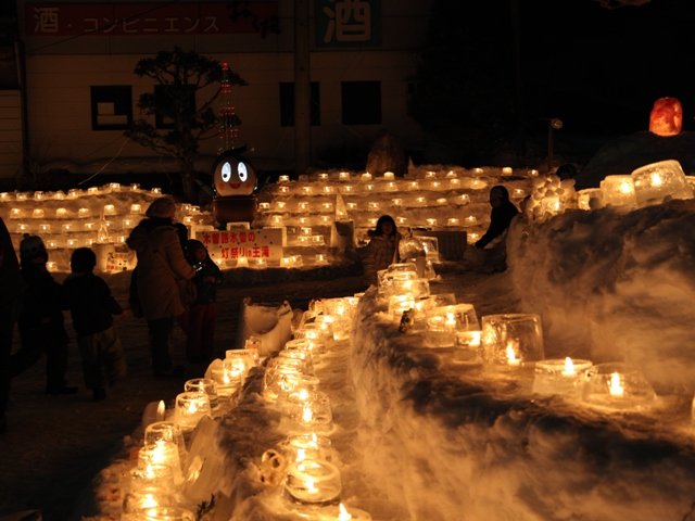 氷雪の灯祭りとは、手作りのアイスキャンドルや雪像などを使い