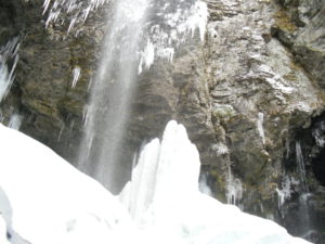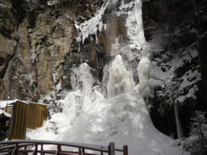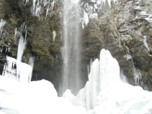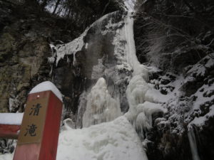 清滝の中程の氷が少し茶色くなっていましたが雪に覆われて白くなっています。