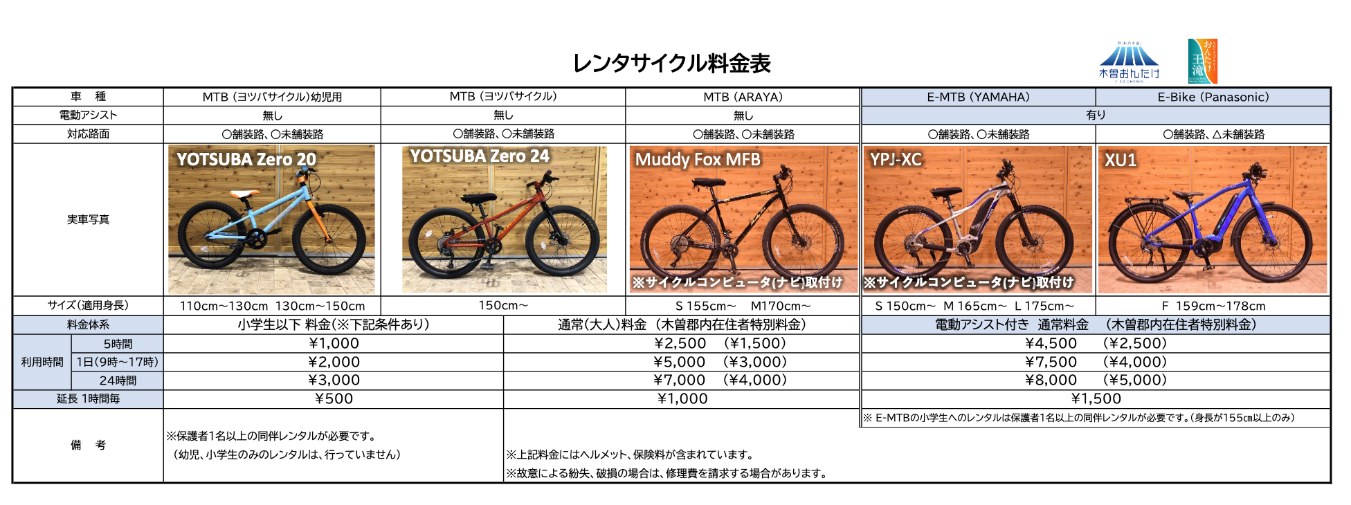 MTB・E-MTB(電動アシスト付)レンタサイクル